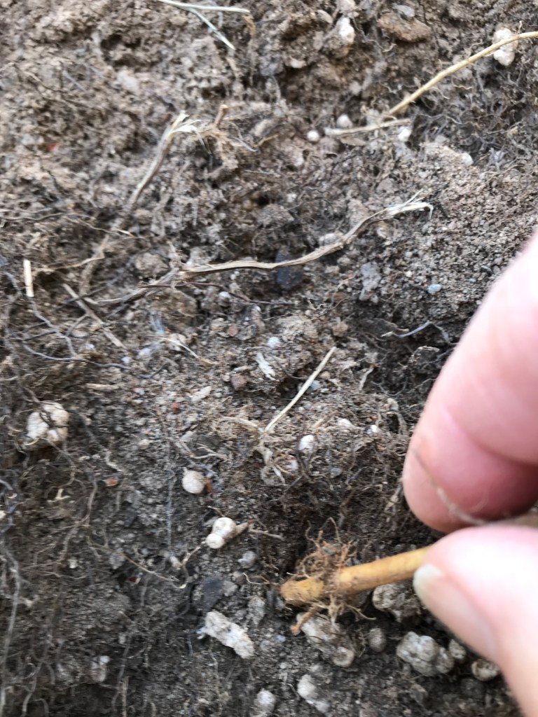 Nu gäller det att hålla efter och plocka undan de sista rotbitarna! De avslöjar sig genom att skicka upp nya blad.